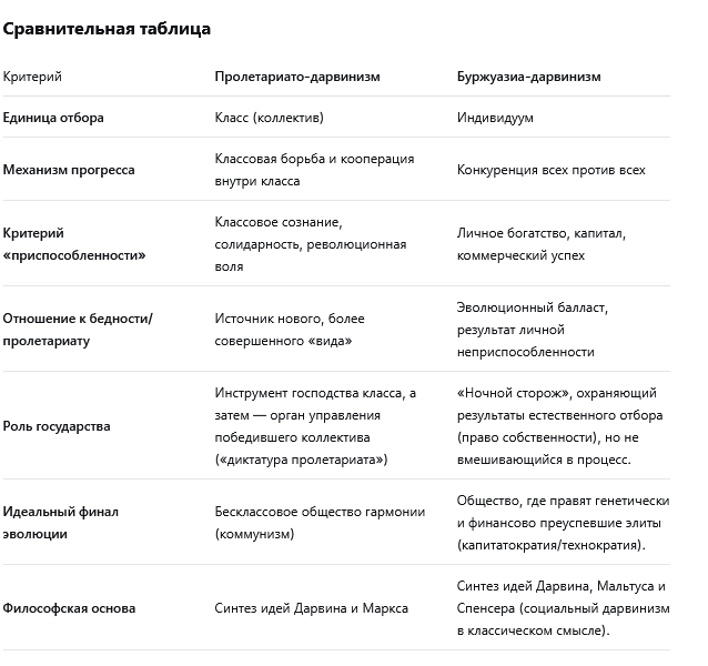 Социал-дарвинизм — это идеология иерархии и оправдания власти сильных. Он использует биологические метафоры ("борьба за существование", "выживание наиболее приспособленных") для обоснования социального неравенства, капитализма, расизма или государственного могущества. Здесь есть четкая "вертикаль" и культ сильной личности (лидера, нации, корпорации).