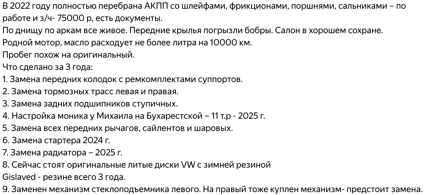 >>6627832 - Автомат сложнее чем в фв гоев-2. Его уже сам без опят в гаража на коленке не сделаешь. И еще его не снимешь не достав мотор. И еще в отличии от vw010 он с электроникой и мозгами. - Видно что пороги надо делать прям сейчас, а не повесне 2026. Это 2000-4000 тр за каждый купить самузапчасть и 15-25 приварить у частника и обработать. Краски, растстоп итд прибавь еще на 5000-7000. - Это ниссан, он вотличии от фвгоев недорожает от времени.