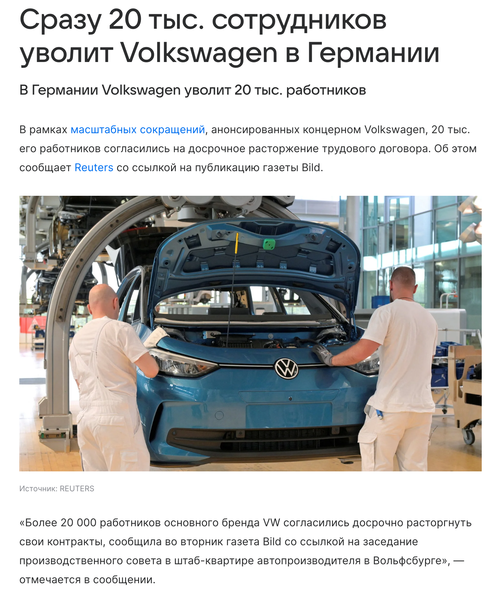 Volkswagen в целях исправления положения планирует сократить 35 тыс.