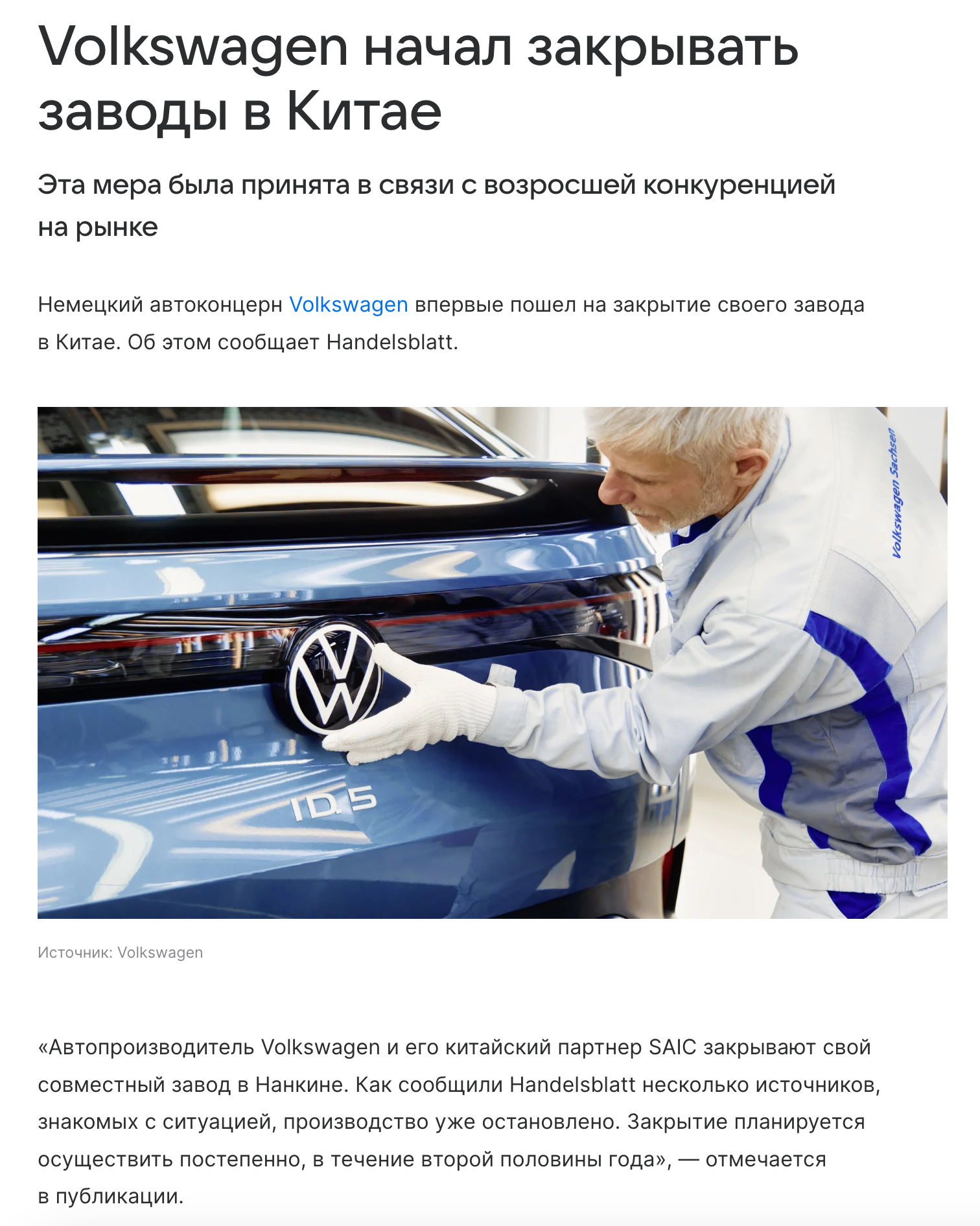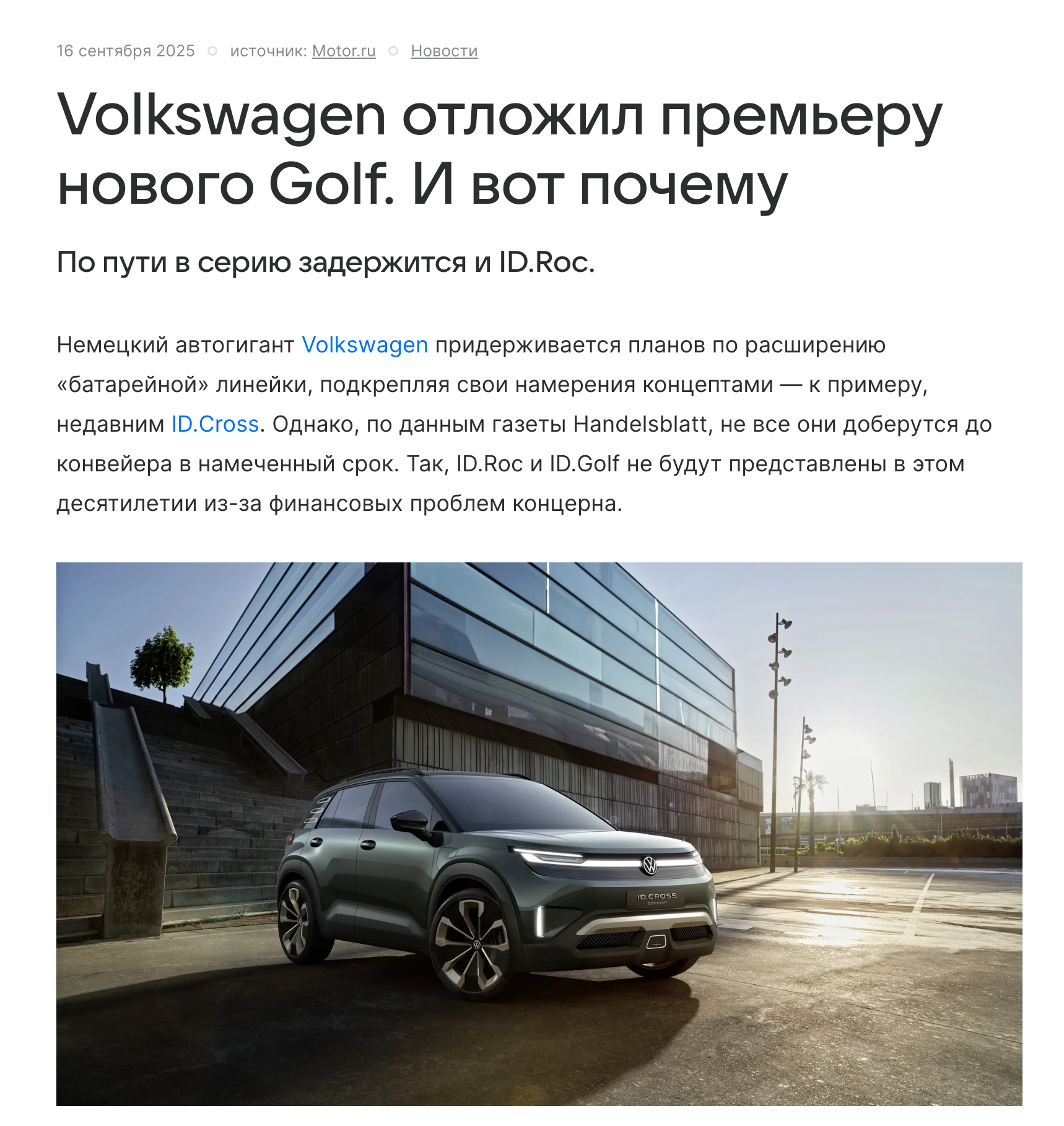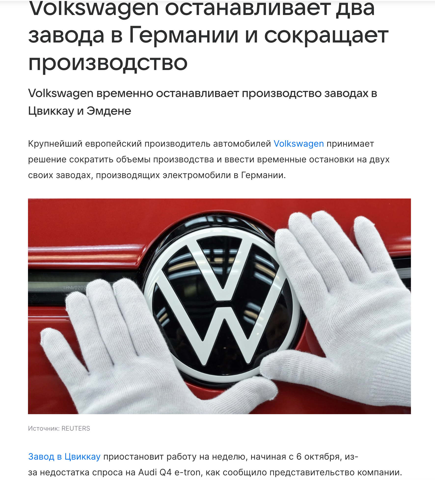 По его словам, немецкий автопром не распознал вовремя тенденцию к изменению предпочтений автолюбителей, когда большую роль стали играть сложное программное обеспечение и электродвигатели. Для Volkswagen это сделало ситуацию критической, поскольку концерн столкнулся с «огромными проблемами с ПО» и стал значительно отставать от конкурентов в плане удовлетворения меняющихся запросов клиентов, сказал Блюме.