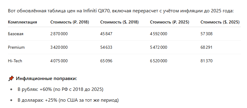 если бы qx70 получила новое поколение, то ценник бы был от 7 лямов как минимум, а кстати, почему нет нового поколения? а, продажи слишком низкие, то есть лучший в мире авто никому оказался на хуй не нужен на фоне немцев