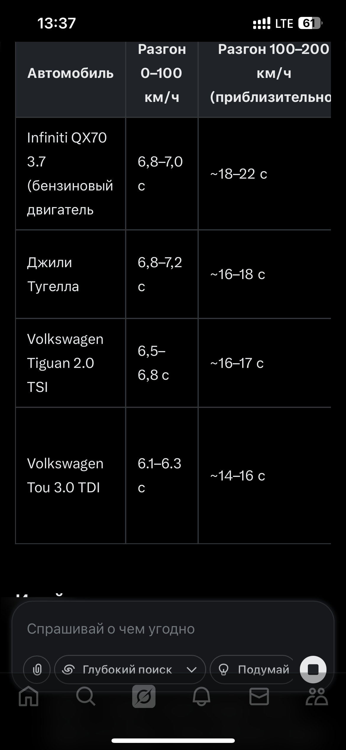 Справедливости ради. Х3 легче на три центнера, тигуан — на добрых полтонны. У первого восьмиступка зф посвежее сратко финика, у второго так вообще современный преселективный робот. И да, на квортере такой тигуан фифинити уже не объедет. Если сравнивать его с х5, который как бы прямым конкурентом был, то по даста там всё ненамного лучше до ф15 включительно. А вот г05 уже ебёт. Но по технике куикс фактически не обновлялся с 2008-го. Так что для машины того времени с массой в две тонны 6.8 — это хороший результат.