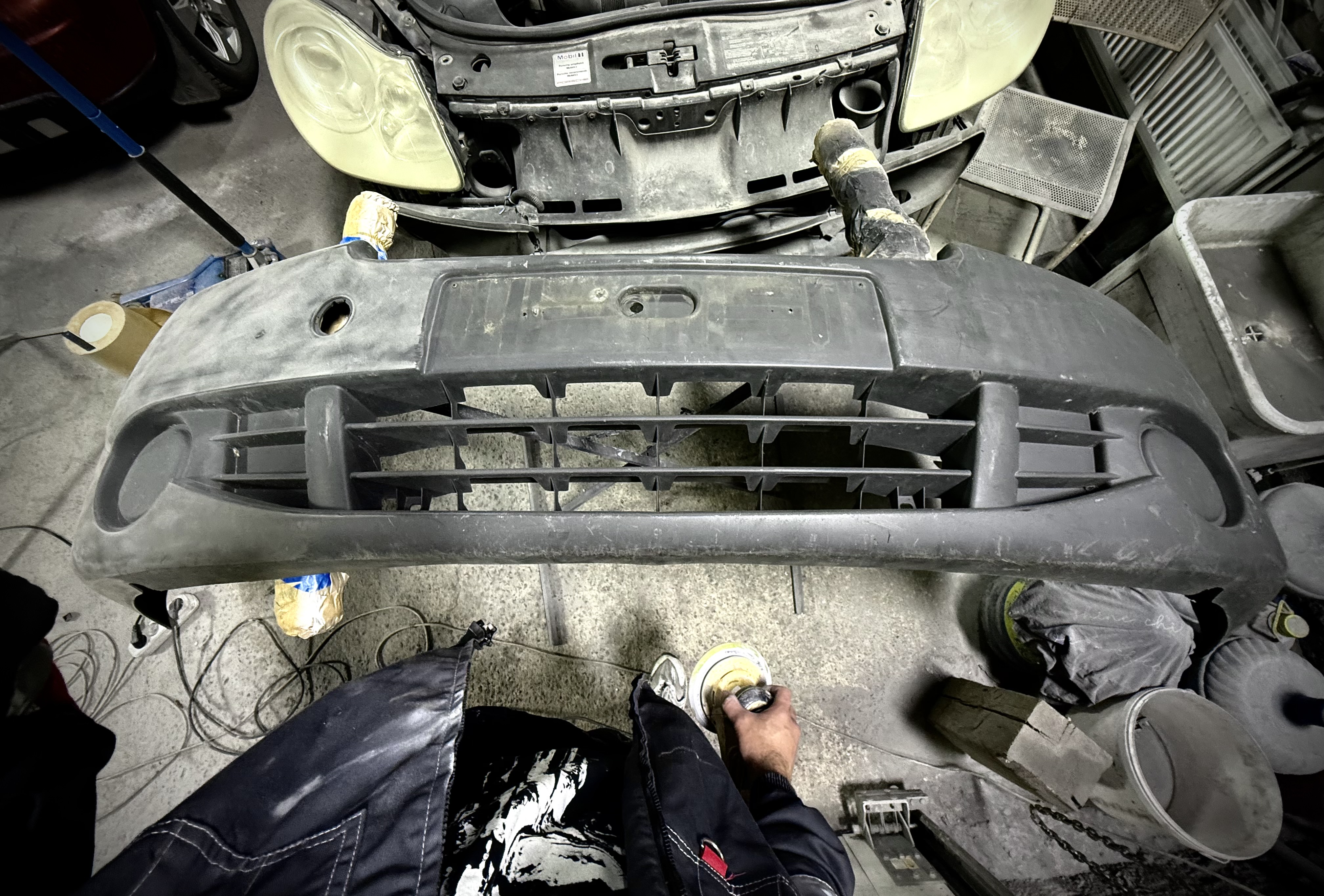 Бампер был на 6 из 10 по состоянию, множественные царапины, сколы и т.п Старался делать по минимуму шпаклевки, для этого я просто растачивал пластик машинкой с кругом р320. За счёт толщины пластика можно сточить небольшой слой так скажем и тем самым сточить царапину или какую-то неровность, считаю так делать правильно ибо Шпаклевка это всегда не очень.