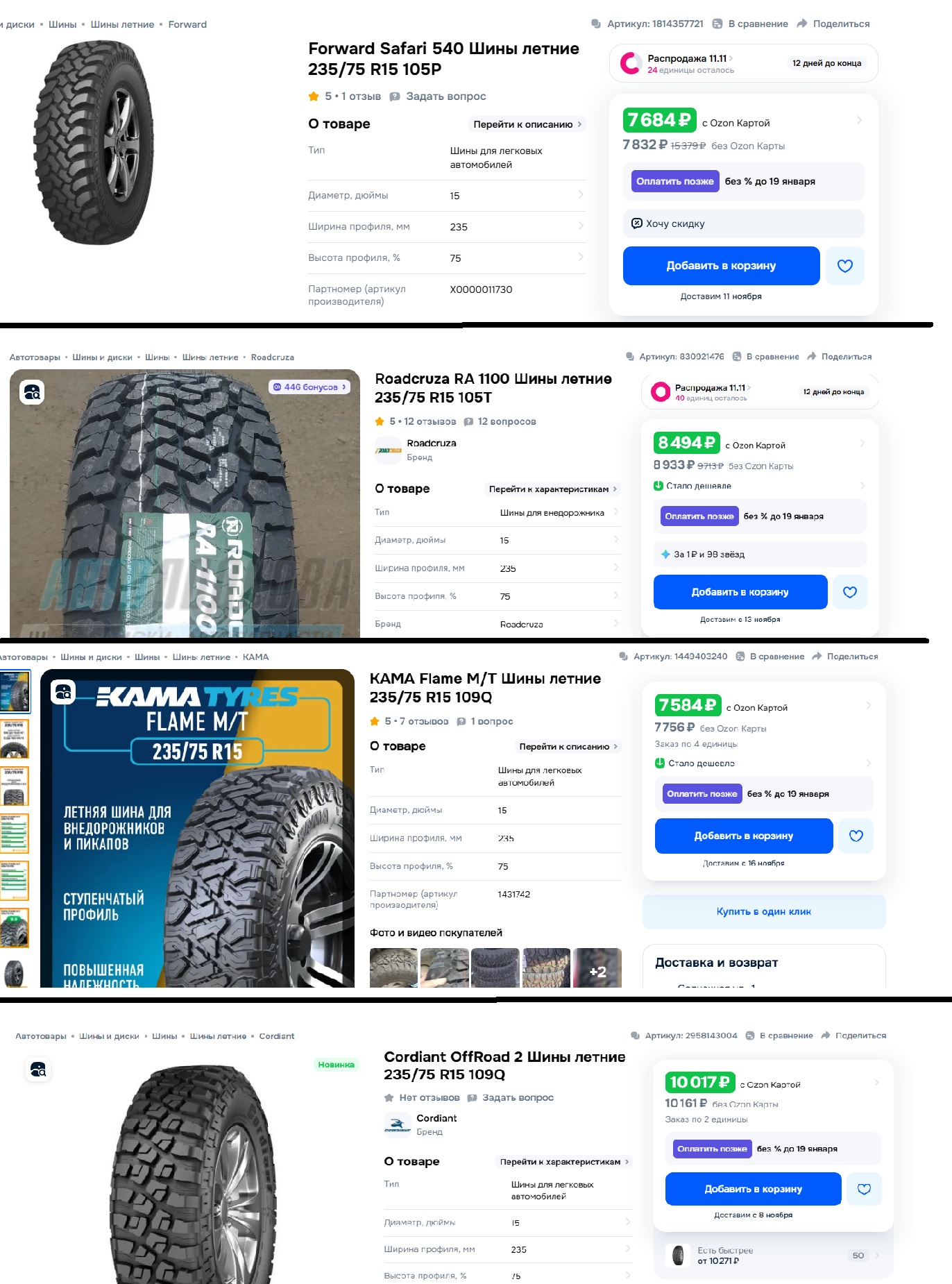 >>6690518 Читал в отзывах, что сафари - криво, небалансируемое говно, разваливающееся само по себе за год. Кордиант тоже не очень. Роадкруза и кама. Либо китай посмотри. Я вот себе Goodride Radial SL369 A/T Шины летние 205/70 R15 96H заказал. Как альтернативы смотрел Maxxis AT771 Bravo и Rydanz Raptor R09 A/T XL. Но у меня волга и я хотел ат 70 профиль. мт дорого для меня