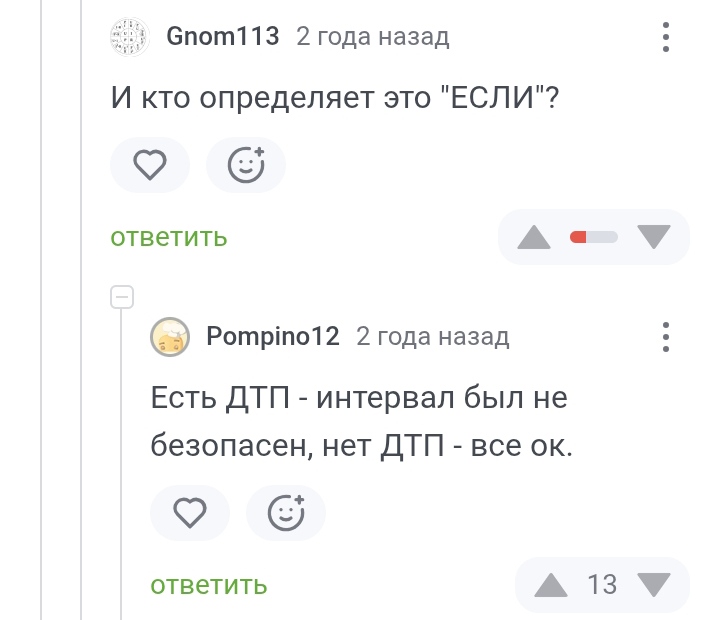 >>6676275 Слыш хуесос, так скольки сантиметрам он равен? Кому то норм в 30см друг от друга, кому-то в 10? Цифр нет таких. ГИБДД разрешает ездить хоть 1см между вами будет, только в случае дтп хз кто виноват будет. Мантры про помеху справа можешь не писать. Она тут не работает.