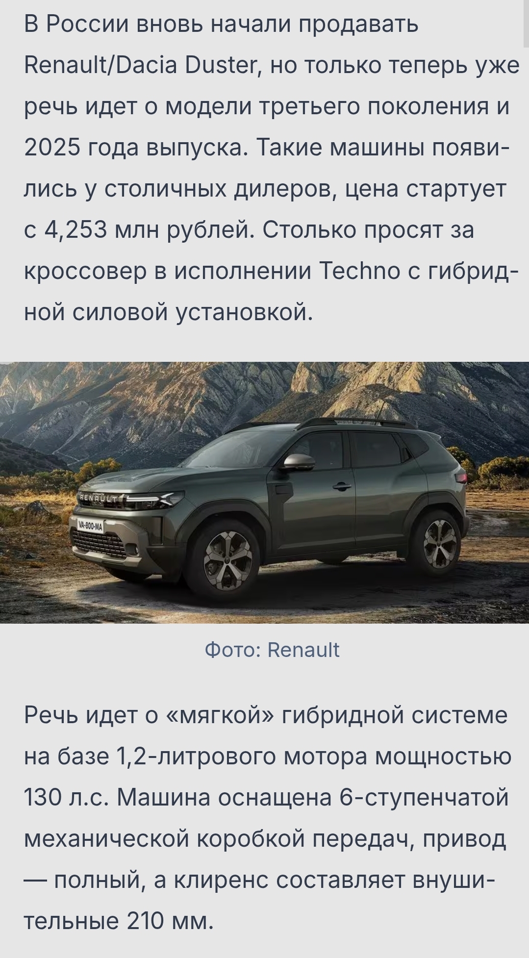 >>6679256 Да жду. >может появиться у российских дилеров уже в начале 2026 года. А изначально кукарекали про осень 2025 суки. Я про робот то же самое писал, могли бы и автомат-восьмиступку придурить. 254лс скорее всего ужмут до 249лс, но я все равно планирую покупку 1,6л 197лс, для моего стиля вождения этого вполне достаточно. >>6679257 Нормальные там автоматы, не пизди.