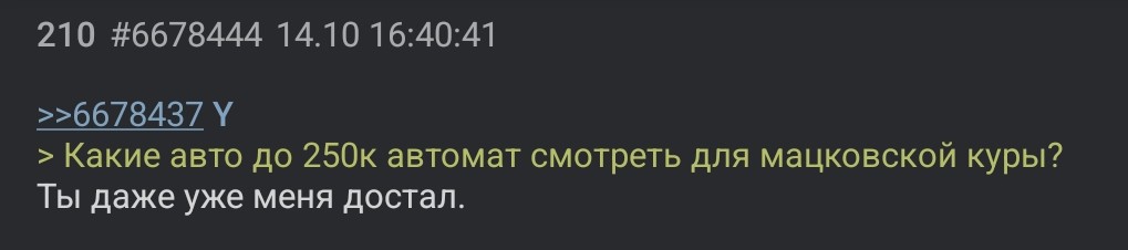 Блядь просто спросил по факту сколько ТО стоит и как его делают, нет, мне начали какую-то шляпу вешать, что все ТО проходят как отличники на первой парте. Что случилось с автачем, пиздец. Я должен поверить в эту хуйню? Что хлам на дороге проходит ТО при постановке на учет? Не несите хуйни.