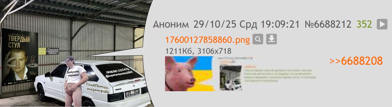 >>6688996 >не хочется повторять за хохлами Так ты и есть хахлуха. Хабалка из ципсо, скорей всего. И прав и машину утебя нет, так что пошла нахуй, дура уродливая.