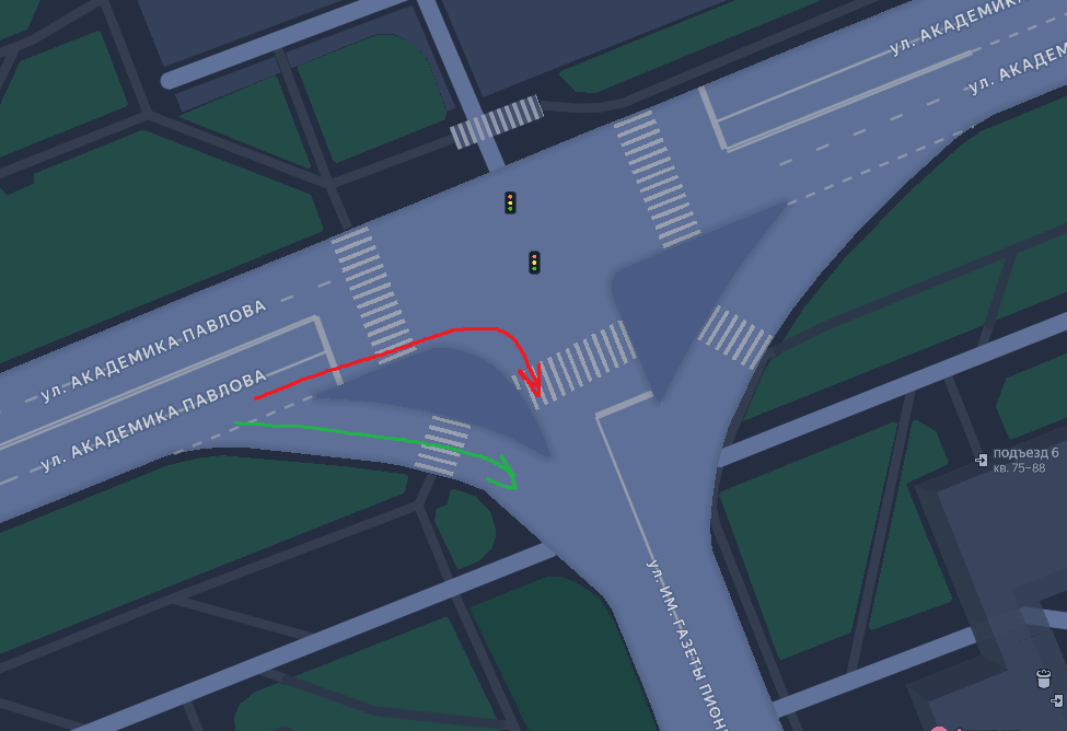 >>6690182 Ну вообще этот съезд, чтобы ты не мешал стоять в две полосы перед светофором. А так, тебе никто не мешает поворачивать на зеленый сигнал светофора, пожалуйста, при этом, ты будешь иметь приоритет перед людьми, которые поворачивают по зеленой траектории, но они особо об этом задумываться не будут и будут лететь тебе в бочину, такие дела.