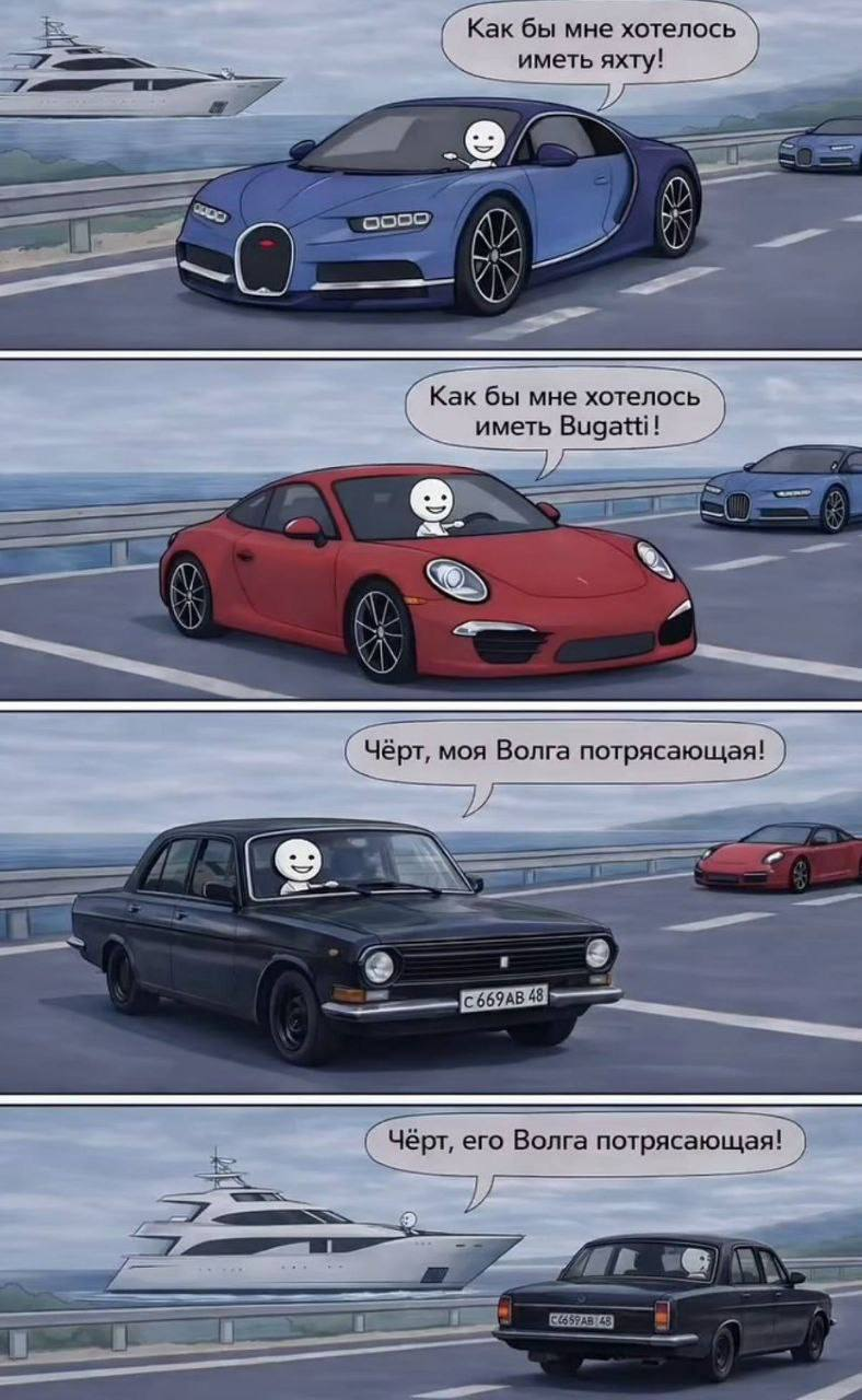 Кхм-кхм дамы и господа. Субару-кун на связи. Вообщем-то купили мы все таки волгу за 60к. Пилю прохладную. Выехали из ДСа в Иваново, дорога прошла отлично. Приехали к продавцу, оказалось что чел коллекционирует лады, ривы и прочее. Час говорили где-то о том о всем, тачку показал нам прокатили, ну и по рукам хуле. Вместе с ведром нам отдали дохуя молдингов, 3 двери, 2 бампера и ещё чет, алсо в тот же момент машину приезжал покупать пердикс на приоре, они с тянкой осмотрели её ну и отказались. Настает момент икс, мы выезжаем на волжанке 76 года без тормозов. В тот момент я за рулем этой некрухи ибо друг сомневался чет. Доехали до заправки(еле еле блять ибо застряли в частном секторе у продавца) , заправились и выехали в сторону Мацквы. Путь был пиздец долгий, я проехал за рулем этой волжанки 300км блять, без тормозов. Ехали 70-80 где-то, тормозили мотором, ещё дорога была уебанская вечные подъемы спуски и коробке волжанки досталось нещадно. Самый эипк был когда уже подъезжали к МКАДу, где нас подрезали четкие таксисты на солярисах. Такие дела малята. Так что за 60к можно взять вполне живую волжанку и проехать на ней от Иваново до Москвы. Завтра планируем сделать ревизию че нам отдали и уже думать че делать с ней.