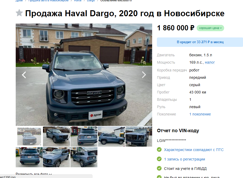 Какой вариант брать? Один тут могу взять в новосибе за 1.830 000 который на скрине или вот этот с владивостока за 1 680 520 ₽ но еще платить за доставку в новосиба haval h6 2022г. Характеристики: Пробег: 35 000 км Двигатель: 1.5, бензин, 150 л.с. Коробка: Робот Привод: Передний