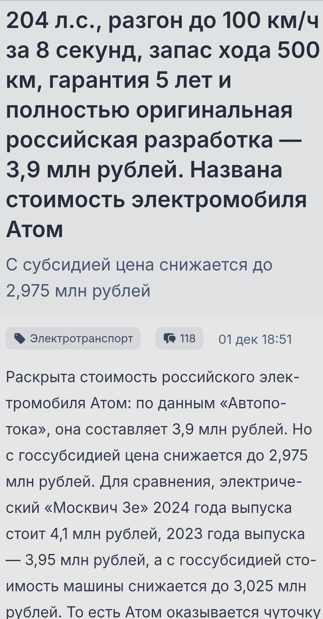 >>6710100 Очевидно при разработке "отечественного" электромобиля следовало себестоимость в бизнес-плане прикинуть ДО завершения проекта, чтобы осознать экономическую нецелесообразность до вбухивания сил и средств. В итоге получился мертворожденный проект.