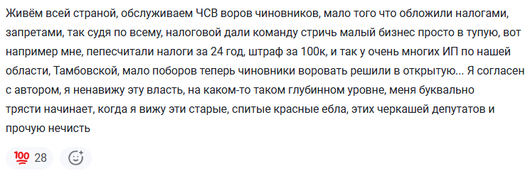 «Это очень важная история для создания прозрачной конкурентной среды. Чтобы у нас не было лазеек, когда один платит все, а другой ничего и в разы дешевле все продает», — сказал депутат. Про то, что гебешные фирмы процветают за счет грантов, субсидий и льготных кредитов в отличие от простых рабсиян, он почему-то не сказал