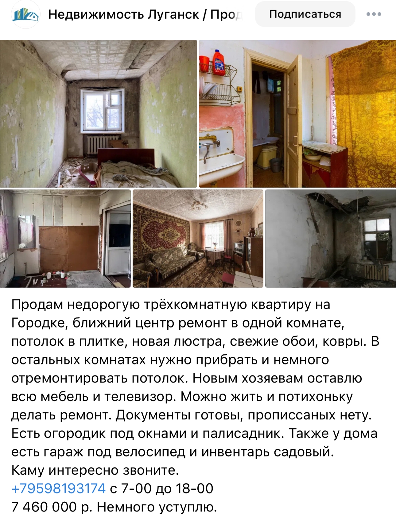 Эй сссарайкин, мультимиллиардер ты наш, а ты в курсе, что твоя хата в ДС стоит чуть дороже трёшки на Луганщине? Обрати внимание, там на последней фотке потолок проломлен, а потом на цену глянь.