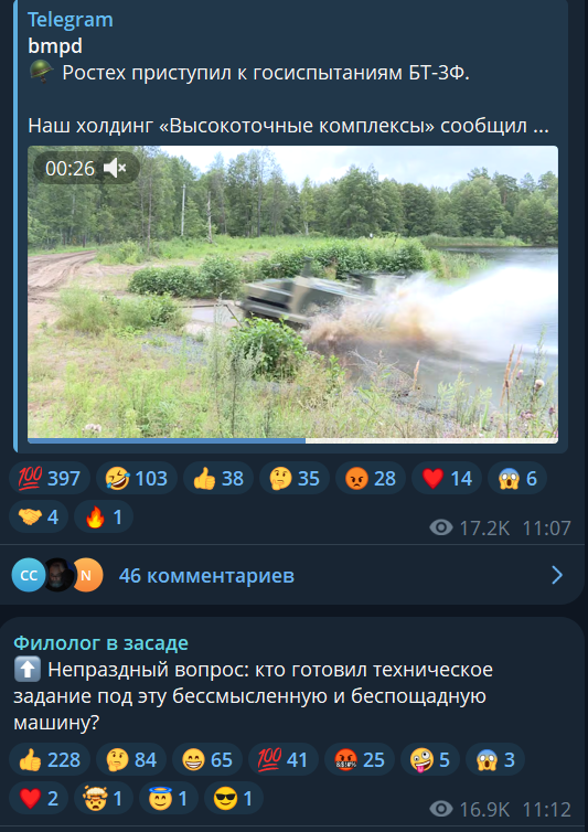 Вот именно, деб. А мы воюем в условиях, когда даже самая дорогая коробка ебется копеечным дроном. И бойцы выбирают багги без дверей, чтобы выпрыгнуть, а не медленные и большие бмп, которые превращаются в легкую мишень для фпв. И зонтики на танках не просто так, и ослы.