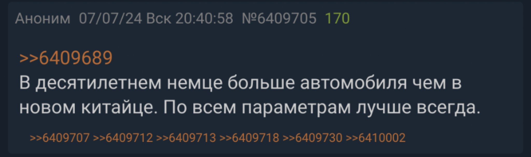 >>6710762 Ну, собственно, ожидаемо. Алсо, я каждый раз проигрываю с новостей на автостате про то, что доля китайских марок снижается, потому что эти кадры просто не считают Тенет и Белджи китайскими марками.