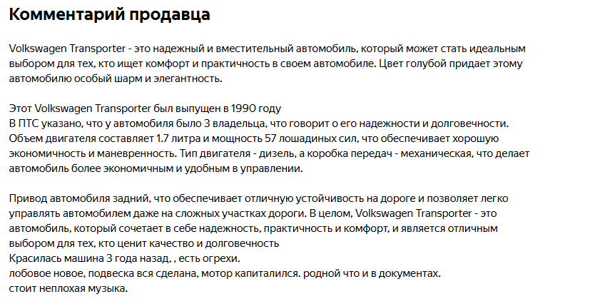 >>6717437 Ну говоришь не хочешь - не покупай, Опять же, мы сейчас про мелкие коцки, возрастные машины и изначально адекватный ценник говорим. Если ты "капсулу времени" по самому верху рынка продаешь, это уже другое.