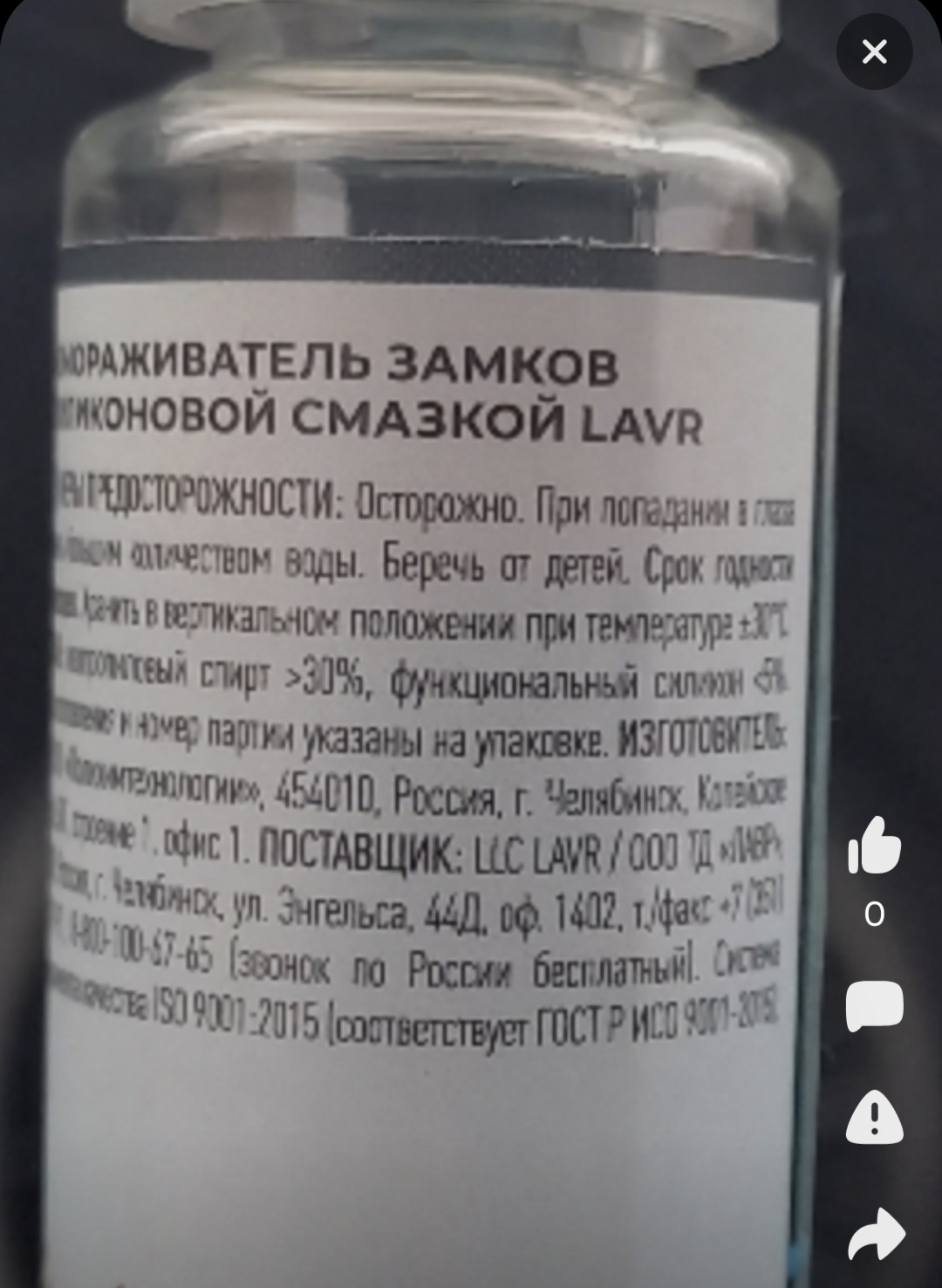 >>6719268 >спрей с проникающей смазкой который вытеснит влагу и смажет замок? Да в этих спреях обычно сразу и силикон набодяжен для предотвращения повторного замерзания