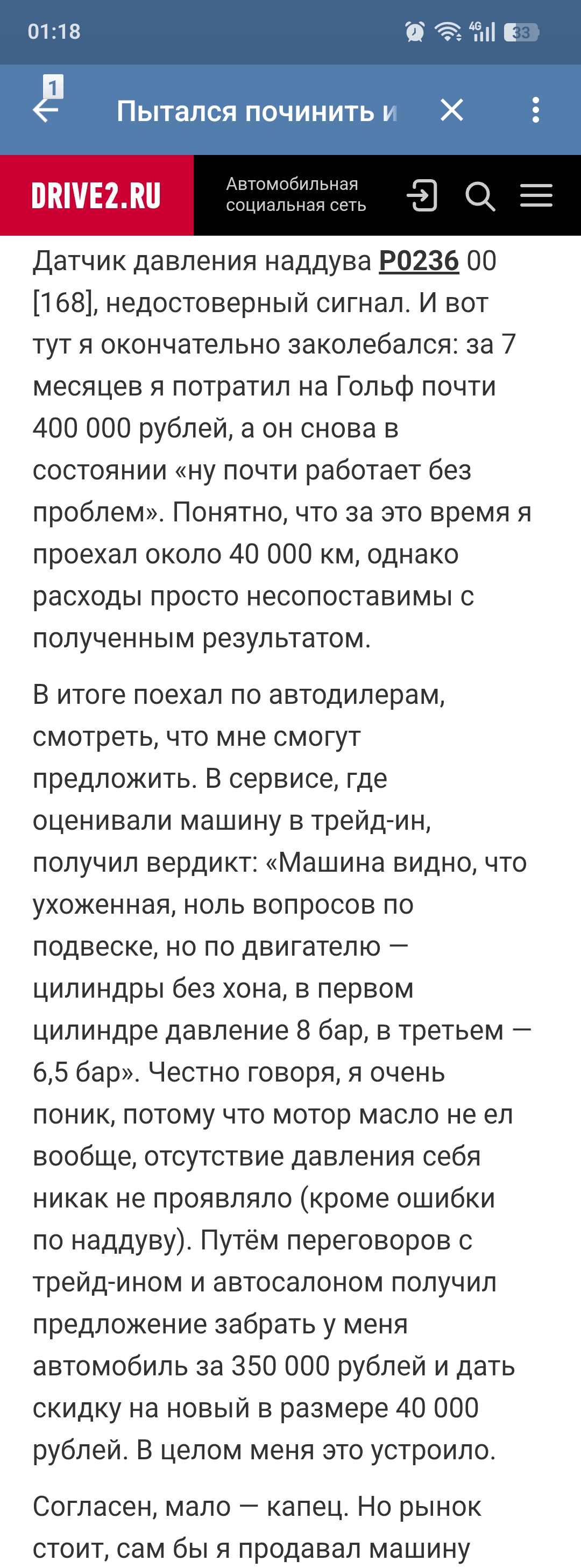 >>6724665 Я поехал за ней в область, был дождь, я ехал туда два часа и меня все заебало, до этого я просмотрел 4 машины и отдал за это 6 тыс автоподборщику, все машины были ультраговно по кузовне или троили\пердели\свистели, у одной иномарОЧКИ, которую я думал брать сгнил вин номер и она была все облита, это единственное, за что перекупу я благодарен, ну и вот еду я в село, дождь, слякоть, говно, я права получил две недели назад и водил еще не уверено, ну приехал, дед завел, звук вроде норм был, сел я прокатится и по неопытности стартанул на ручнике, от чего ее заклинило нахуй, дед разнылся, пошли к местному дяде Васе, который напиздел на деда и принялся чинить его говно, я спросил у дяди Васи, че там как, дядя Вася говорит, мол у вас тут еще тормозная трубка лопнула и барабаны бы заменить на одном заднем колесе, ну дед разнылся и отдал кровные, сделали, я предварительно уточнил у дяди Васи, мол че по машине, тормозам, я вообще до своего мухосранска доеду? Дядя Вася уверенно сказал, что все будет пучком, в целом спросил про состояние машины и дядя Вася почесав репу сказал норм все, больше я в нее не садился, дорога говно, дождь, нихуя не видно, я боялся разъебаться ну и доверился диду, наивно пологая, что ну похуй, даже если ходовка не в идеале она вообще без рыжни, а ремонт тазов стоит копье, ну и отдав деньги, подписав дкп, я поехал по трассе, все было хорошо, пока я не проебал поворот из-за отсутствия видимости и чуть не вылетел с трассы, потребовалось резко затормозить, понимая, что лучше быть осторожнее поехал немного медленнее, ну и понял что все пиздец я только тогда, когда меня по приколу из-за моей низкой скорости начал оттормаживать мерс, обогнавший меня, я торможу, чтобы не въебаться в него и понимаю, что она не тормозит)00)), дрочу тормоз и чудом не въебался в долбоеба, кое-как на скорости 40 доехал, в городе ехал 30, тормозить начинал за километр, чтобы не въебаться, ну просто на удаче не разъебался, пригнал, и ночью на аварийке доехал до ближайшего сервиса, где утром мне сообщили о том, что другой тормозной трубке тоже пизда, ее заменили, я поехал, на следующие сутки у меня опять вытекла тормозуха, ну и так я заменил всю тормозную систему, где мне сказали, что если мне не хочется попасть на капиталочку, то лучше заменить ремень грм, так все делают после предыдущего хоза, ну через время ремень грм был заменён уже в сервисе, по знакомым, но капиталочки я не избежал, потому что грм буквально развалился.