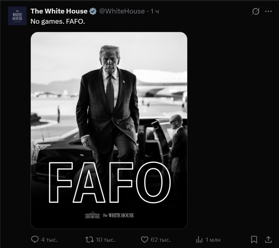 «Можно сколько угодно рассуждать о международных приличиях, но реальный мир управляется силой и мощью. Это железные законы мира - Замглавы аппарата Белого Дома Миллер, комментируя операцию США в Венесуэле.