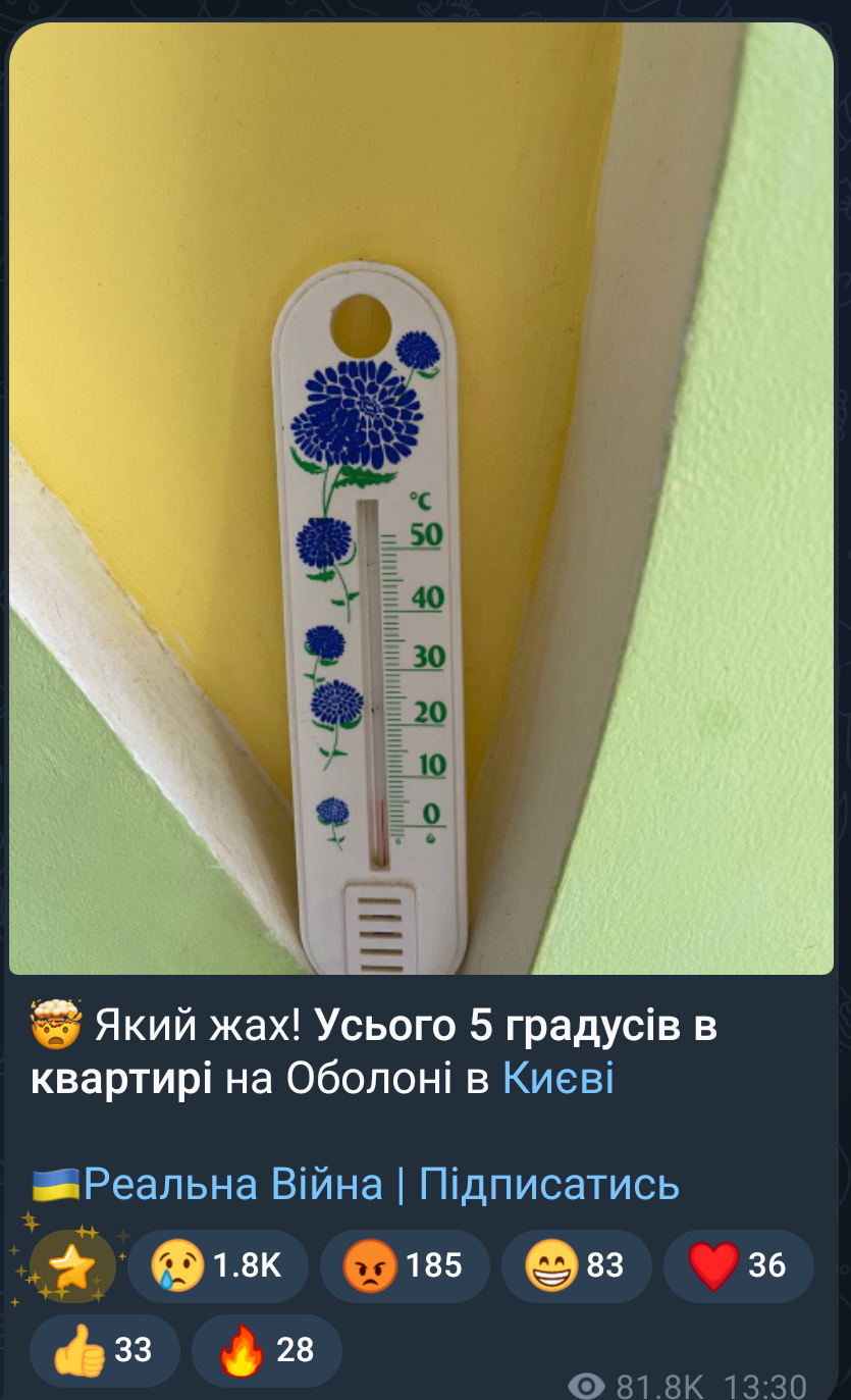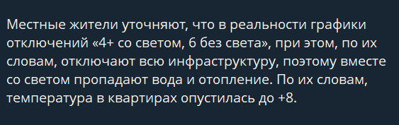 >>6735193 Глава военной администрации Киевской области Николай Калашник призвал жителей не блокировать дороги в знак протеста против отсутствия тепла и света.
