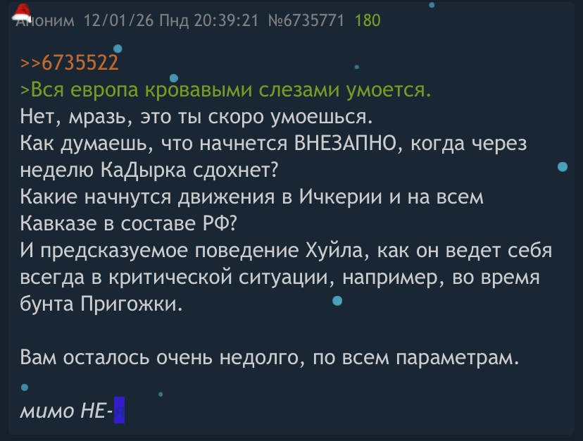 >>6735674 > а дать западным плохишам руками xoxликов выжечь всю эту скверну. Меня и моих родных сожгут вместе с ними. Удобно писать из Чмохословакии такие призывы, да. Но только сейчас, к сожалению, мои личные интересы с интересами государства совпали. И поэтому (а так же из обычного чувства сострадания) донатятся копейки пацанам на РЭБ и рации. Вместо бахвальства ресторанами адресно повышается выживаемость пацанов в ебучей мясорубке. Хоть на немного.