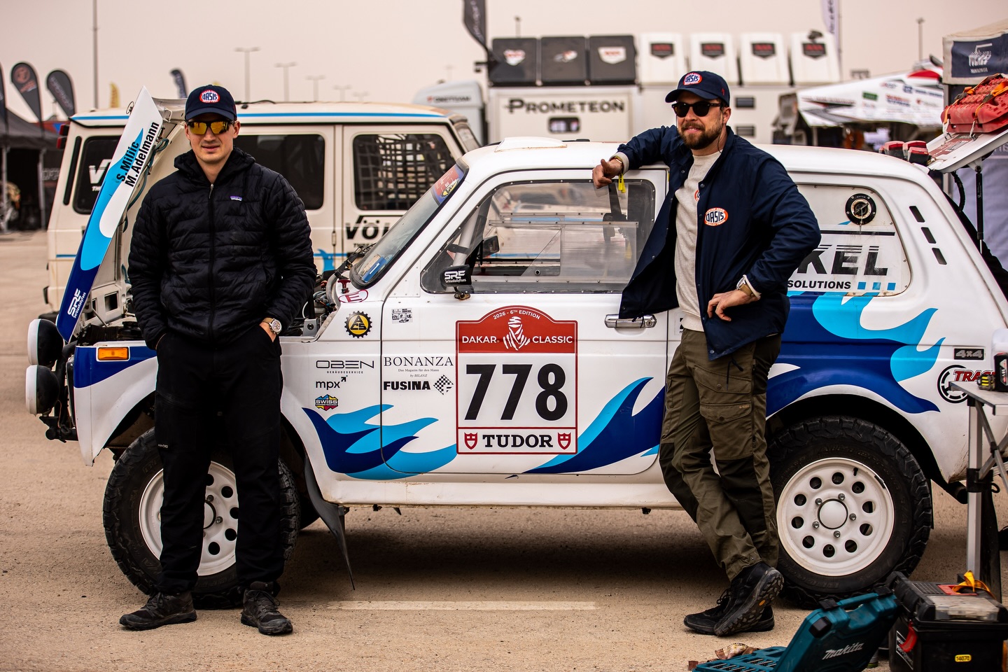 Итак, обновление. Вчера у нас снова были проблемы с приводным ремнём. Он продолжал растягиваться, и мы больше не могли его натянуть, потому что ремень становился слишком длинным. Вчера мы нашли действительно хороший ремень, с текстильной вставкой, установили его, и сегодня он работал идеально: мы очень неплохо проехали спецучастки 1 и 2 (10‑1 и 10‑2), машина ехала отлично. Когда мы уже были на лиазоне к третьему спецучастку и ждали старта, мы на всякий случай проверили, всё ли в порядке с ремнём и остальным, и тогда увидели, что вода на самом деле закипает, хотя по приборам ничего не было видно. По показаниям температура выглядела нормальной. Поэтому мы сейчас немного боимся, что, возможно, головки (блока цилиндров) потихоньку «поджарились». Мы забрали с нашего сломавшегося сервисного грузовика запчасти, новые прокладки. Теперь нам нужно проанализировать ситуацию, но сейчас мы немного рискуем всей гонкой.