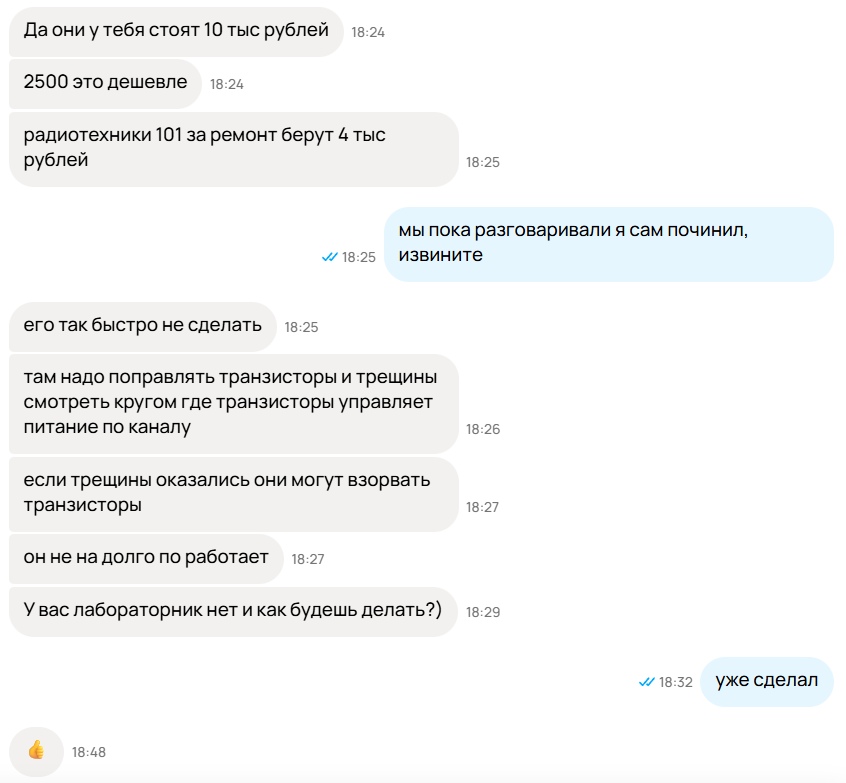 К слову о мастерах в гаражах, заехали к знакомому нет зарядки на Акценте хендае. Мастер вышел ебанул педаль в пол во все работает иди на хуй, в фишке проблемы. На следующий день ничего не работает. Фишку сами прозвонили выдает как положено оба контакта. У меня сразу подозрение на реле как на классике. Заехали в гараж, сняли, там по ебанутому диодный к реле припаян, распаяли сняли. Вставка угольная одна сьедена почти полностью, вторая почти целая. Кореш решил менять гену полностью, поменяли все хорошо. А ебло которое которое сказало дело в фишке взял бы 2к за 0амену гены, благо у нас потеплело гараж то не отапливаемый