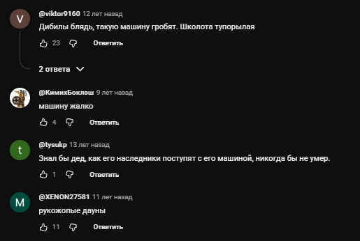 >>6739442 Как будто бы кто-то запрещал этим дристовраторам тоже купить этот самый москвич из под мёртвого деда без документов за 5 тысяч. Но все равно ощущение неприятное, будто снафф смотрю.