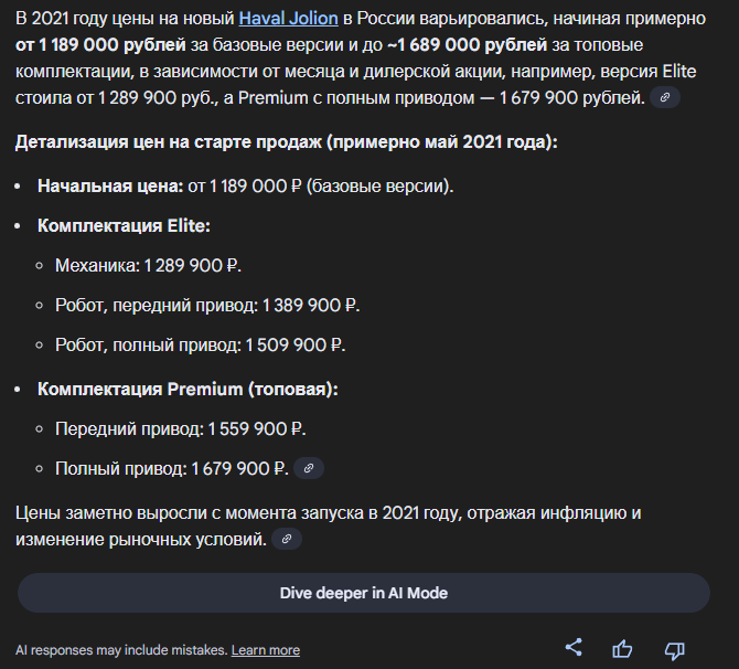 >>6741746 Именно по цене-качеству хавал м6. Всё остальное просто разбрасывание деньгами ради хуёво работающих иных опций. То есть каждый выброшенный рубль сверх цены хавала м6 почти улетает в пустоту.