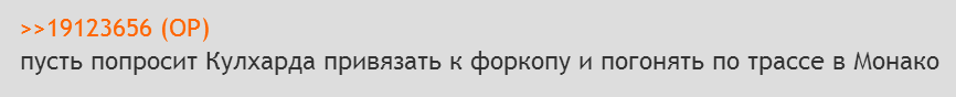 >>6758590 Та феррадурики выёбываются с пустыми баками, а умный Тотошка шифруется пока со своим читодвигателем, чтобы выебать всех в гонке. А этот вёртолёт на заднем крыле 100% ломаться начнёт в гонках, вот будет смеху, когда сэр нигер с заклинившим крылом убьётся апстену каксенна