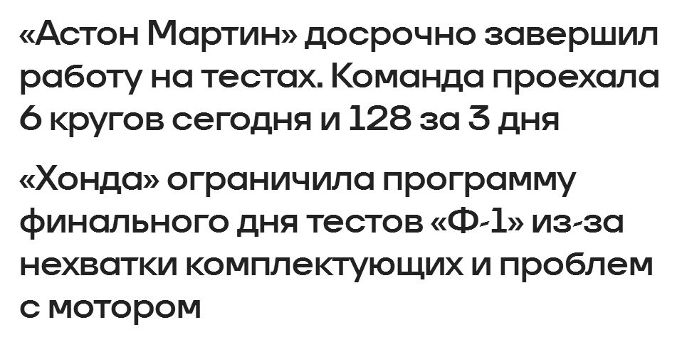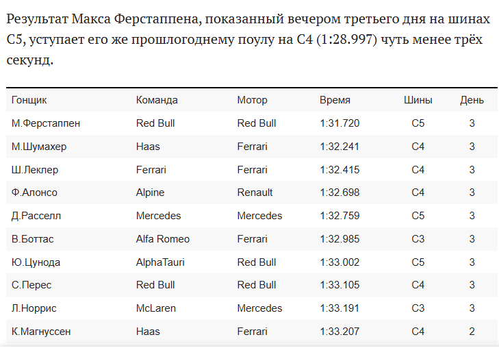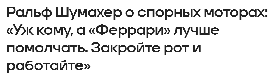 «Прямо сейчас я бы поставил «Феррари» на первое место, а «Мерседес» на второе. Вопрос только в том, кто из команд на самом деле скрывает свою скорость? Есть, конечно, и вопросы относительно места «Ред Булл», причём это ещё и зависит от того, о каком конкретно болиде мы говорим. На тестах мы снова увидели, что если говорить о раскладе сил в команде, то у нас есть отдельно болид Ферстаппена, а отдельно — Хаджара. И некоторые ставят Ферстаппена на уровень «Мерседеса», ну или почти.