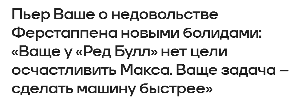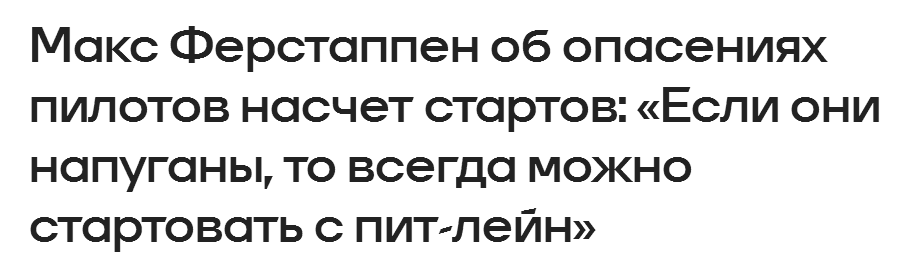 >Макс Ферстаппен о новых машинах Ф-1: >Да, говорить подобные вещи всегда непросто. Но, как гонщик, я должен реально смотреть на вещи. И ощущения от управления этой машиной не очень похожи на то, что чувствуешь за рулем болида Формулы-1. Скорее это какой-то болид Формулы Е на стероидах.