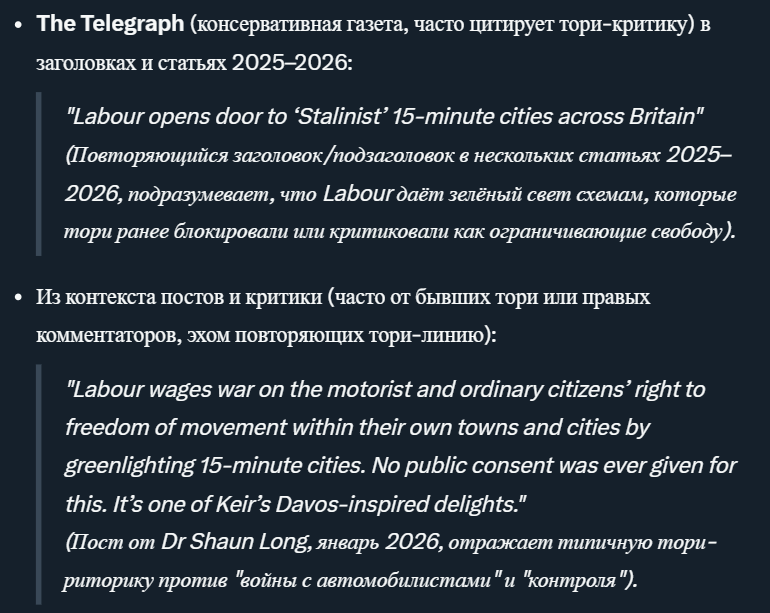 Лейбористское правительство одобрило концепцию «15-минутных городов», теперь муниципалитеты имеют права поделить свои территории на «15-минутные зоны», имеется ввиду, что время передвижения на автомобиле из конца в конец зоны должно не превышать 15-минутный интервал. Муниципалитетам будет разрешено использовать общенациональные базы данных водительских удостоверений для того, чтобы накладывать штрафы на тех, кто нарушит границы этих зон. Ассоциация автовладельцев Великобритании назвала эти ограничения «сталинскими».