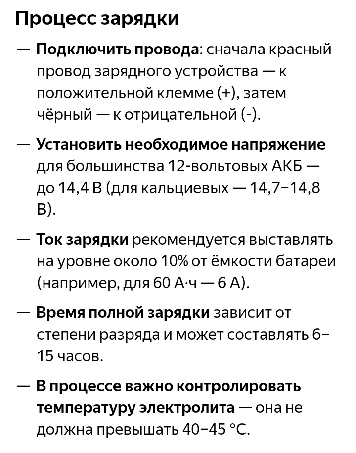 >>6745697 В авто это вынужденная мера, к тебя ведь там АКБ не может часами заряжаться. А тут нужно согласно инструкции 10% от ёмкости. Обычный АКБ легковушки 60а/ч.