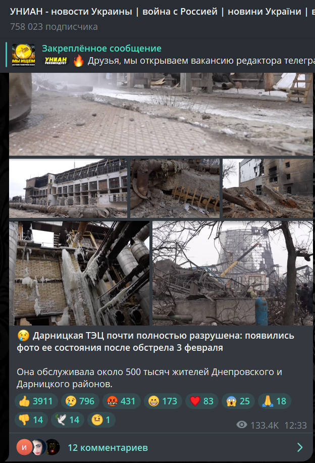 2. Под ударом во всех случаях были инфраструктурные объекты, обеспечивающие город и другие районы области светом и теплом;