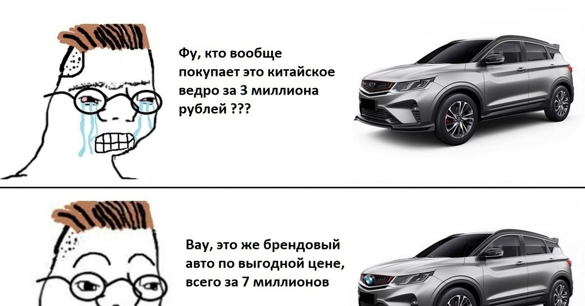 В 2010 так же про "собак" все ехидничали. Теперь "собака" это элитный авто, недоступная роскошь. Кек. Буквально какие-то игры восприятия, никакой связи с объективной реальностью тут и не пахнет.