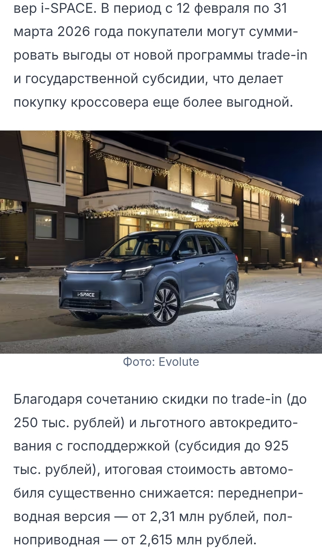 > 330 км пути > CLTC Значит, зимой в Москву и назад я не сьезжу, потому что там километров сто будет. Я уж молчу, что такую тачку никто не купит. В общем-то, типично донфенговское непонимание рынка в РФ/Беларуси. Беларусь от РФ отличается слабо, да там зарядок побольше натыкано, но принципиалная проблема электричек у нас не в этом, а в том, что у людёв нет своего парковочного места со своей зарядкой.