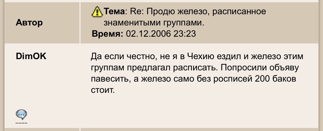 >>6762152 Капец, у тебя перемога 20-тилетней давности. Я аж расплакался, вспомнив, что в те времена у меня был интернет, а у одного знакомого барабанщика нет. Это насколько тебе должно быть нечего делать, что ты везде на меня компромат нарыть пытаешься, но ничего не находишь.