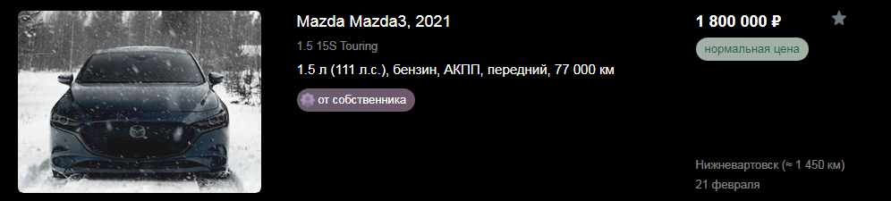 >>6762274 В районе 3,5-4кк она на выходе будет. Закидывали различным чувакам эти самые мазды полгода назад примерно такой порядок цифр был, скорректировал с учётом текущих реалий.