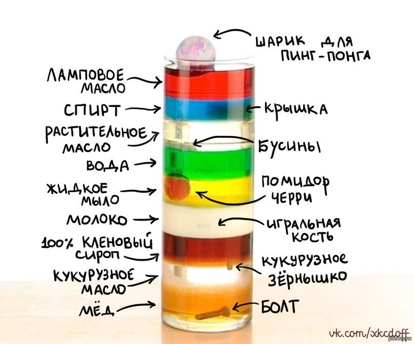По принципу разности плотностей - более плотное вещество всегда стремится вниз по отношению к менее плотному.