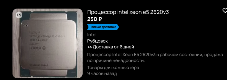 >>326308536 Ты совсем дурак? Ты предлагаешь процы за 9 и 13к, к которым надо еще мать и память покупать. При этом сборка на зионе мать+16гб ддр4 + 2690v4 стоит 12к.