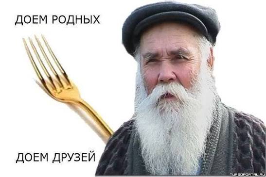ЗАСТОЛЬЕ @ СЫЧИК КУШАЕТ %ЕДА_НЕЙМ% @ ООО, СЫЧ, А ЗНАЕШЬ КАК ЕЩЁ ВКУСНЕЙ БУДЕТ @ НЕ СПРАШИВАЯ СЫЧИКА РОДСТВЕННИКИ ПО ОЧЕРЕДИ НАЧИНАЮТ ДЕЛАТЬ БЛЮДО "ВКУСНЕЙ" @ ДЯДЯ БОЛЬЖЕДОР С БОЛЬШОЙ НАТУГОЙ ЖИДЕНЬКО СРЁТ В ТАРЕЛКУ @ ТЁТЯ ЯЧСМИТЬ СРЫВАЕТ ВОЛОСЫ С ПИЗДЫ БАБЫ ФЫВЫ, ПОСЫПАЕТ СВЕРХУ И ПЕРЕМЕШИВАЕТ @ БАТЯ ВЫБИВАЕТ ДЕДУ ЙЦУКЕНУ ПОСЛЕДНИЙ ЗУБ, ПЕРЕМАЛЫВАЕТ ЕГО В СТУПКЕ, ПОЛУЧИВШЕЕСЯ СЫПЕТ НА ХЛЕБ С МАСПОМ @ МАМКА ССЫТ В СТАКАН, ПОТОМ ПЛЮЁТ ТУДА @ УХ КАК ВКУСНО ПОЛУЧИЛОСЬ, АЖ САМИМ СЪЕСТЬ ХОЧЕТСЯ. ВКУСНОТИЩА ТА КАКАЯ! ВО! ПОКАЗЫВАЮТ БОЛЬШОЙ ПАЛЕЦ @ ВОТ ТАК МЫ В ДЕТСТВЕ ПИТАЛИСЬ, АЖ ЗА УШАМИ ТРЕЩАЛО, ДАВАЙ ПРОБУЙ И ТЕБЯ ЗА УШИ БУДЕТ НЕ ОТТЯНУТЬ