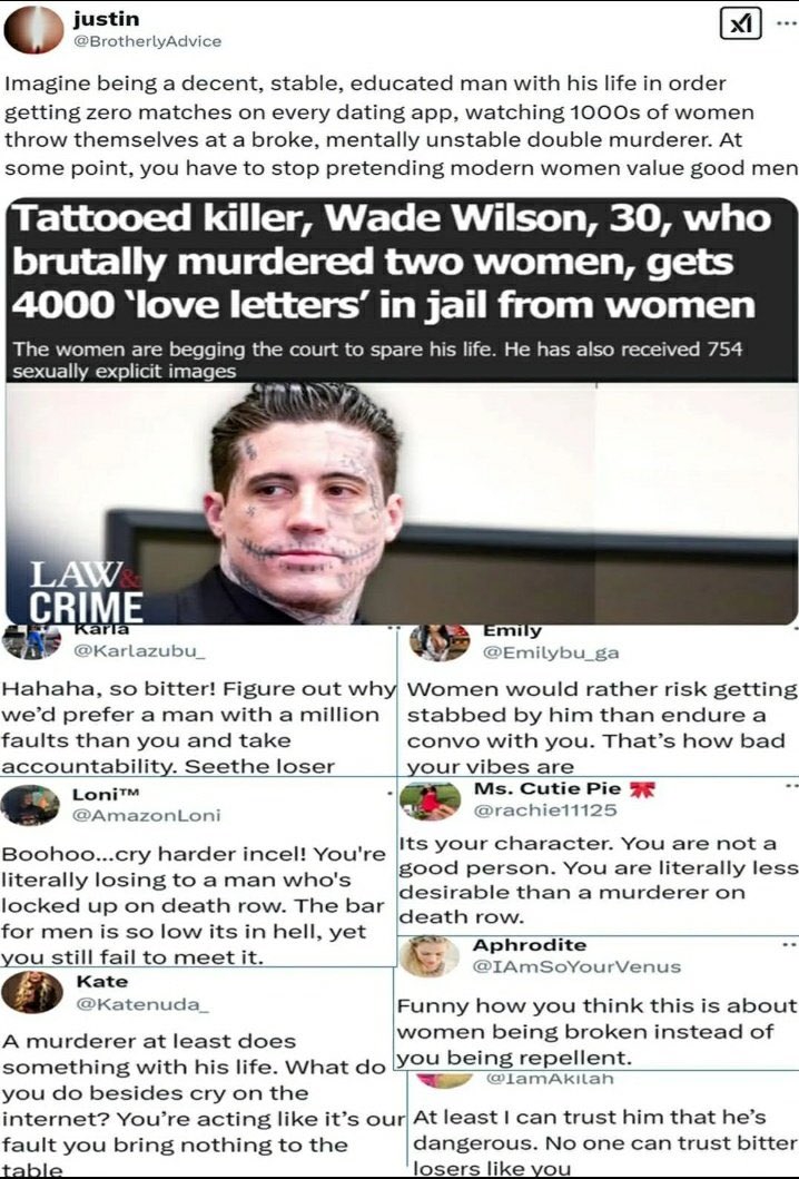 Второе - упование "на мужика", это к слову классическая бабская черта, так что во многом инцелы тян (точнее их карикатурные вресии) похоже ненавидят как раз потому, что видят в них свое собственное отражение.