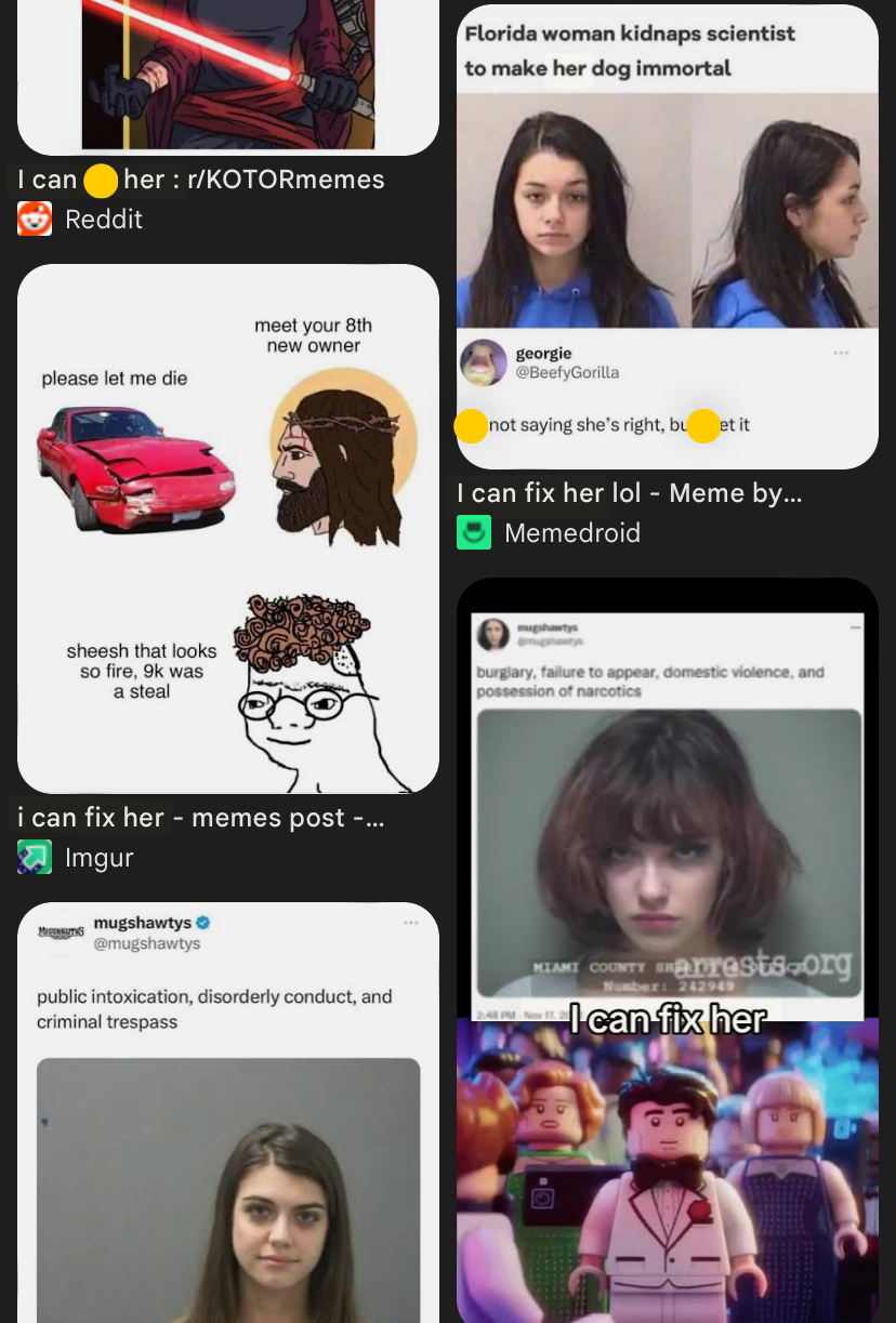При этом посты, где челы нализывают красивым маньячкам убийцам, ты конечно же игнорируешь. Причем это настолько частое явление, что уже появился мем i can fix her