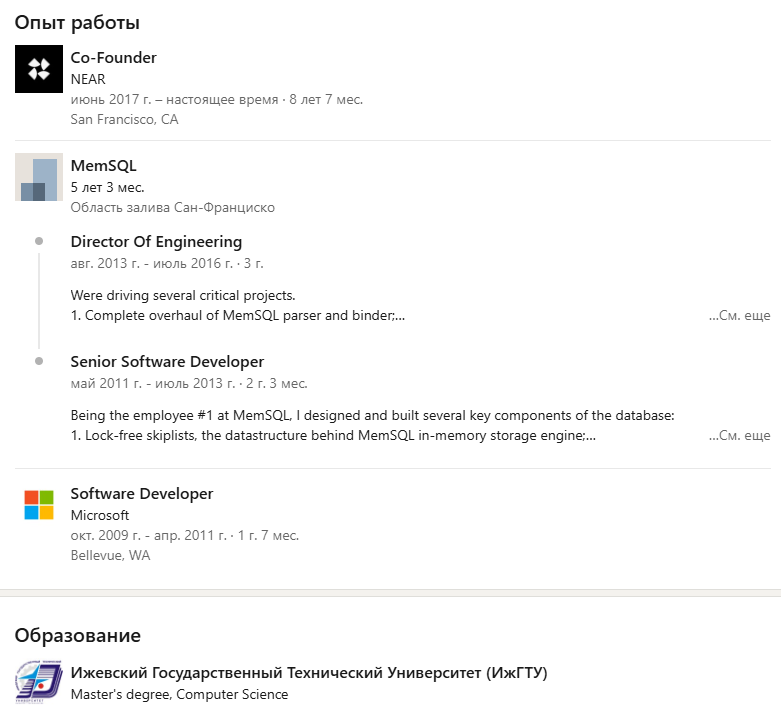 >>327942761 >>327939964 (OP) Из опыта у нее сбере 1.5 года и 9 месяце в яндексе судя по линкедину. Теперь синьор. Подрабатывает директором у теневого(телефон из открытых источников её).