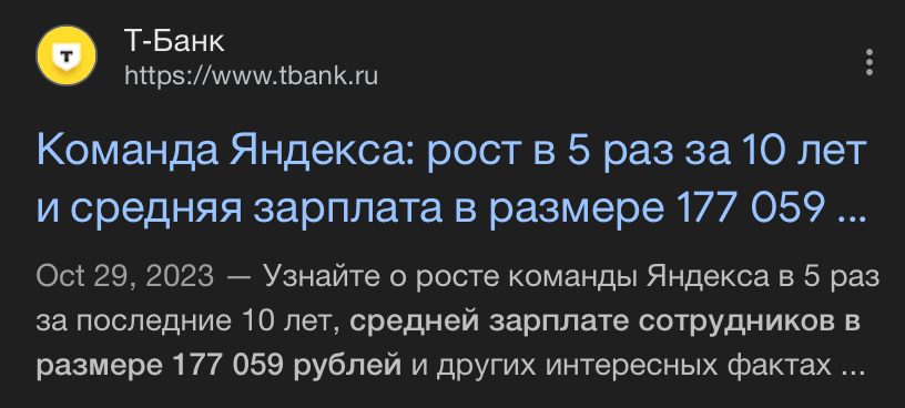 А если про зп говорить, сколько смотрел у них вакансии, они ниже мидлов не берут, вот тебе и высокая средняя за счет малого количества сотрудников. В сбере/тбанке/яшке десятки/сотни тысяч сотрудников от стажеров до лидов, с разбросами зп от 60к до 2кк, вот и размазанная средняя зп