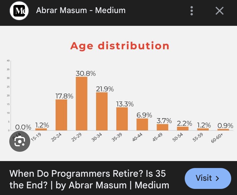>>327968058 А те 1,2% retired "программистов" в возрасте 15-19 лет - это те, кто не осилили написать программу, которая выводит на экран "Hello world"? Или каждый сотый программист-школьник - это гений, заработавший миллионы до 15-19 лет и ушедший на пенсию?