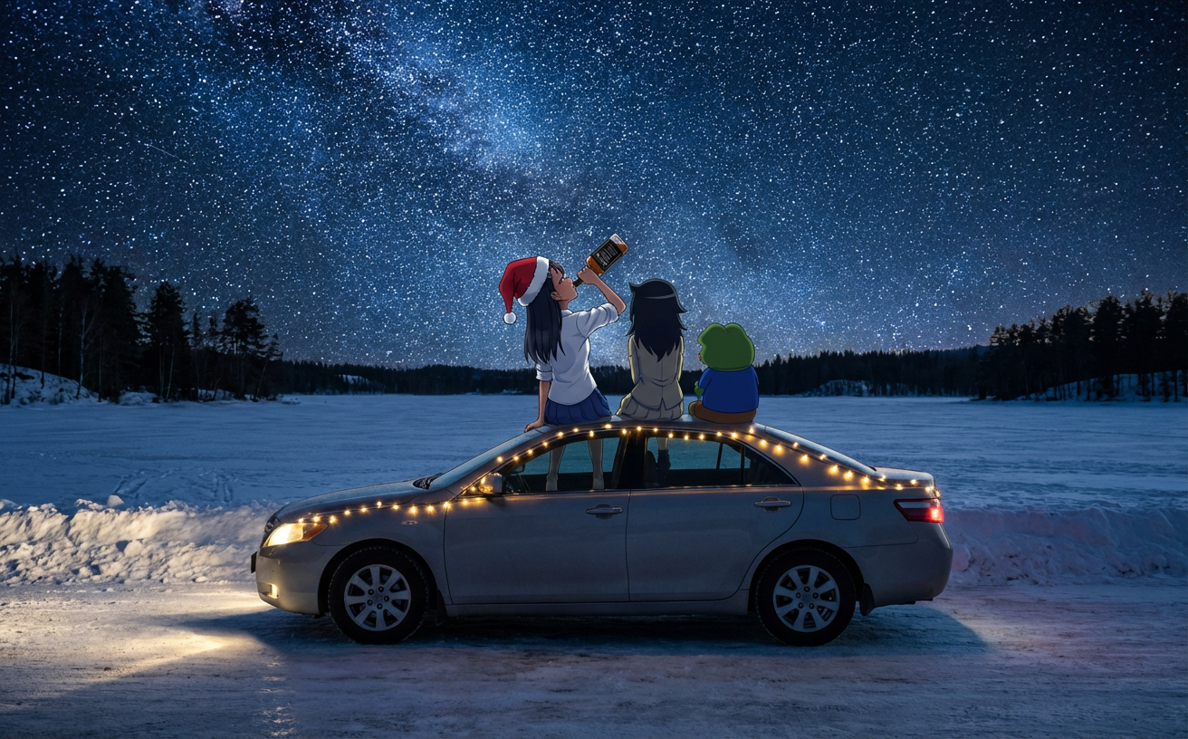 🦌🚛❄️ Шиконоко и Дед Мороз Шиконоко крепко сжимала руль «Газели», вглядываясь в заснеженную дорогу. Дворники едва справлялись с летящими хлопьями снега.