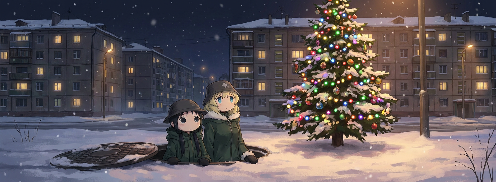 Вообще на пикчах хеппиэнд когда Тито и Юри таки добрались до самого верха и вылезли из канализационного люка и оказались среди девятиэтажек где их встретил Дед Мороз с елочкой и с подарками!